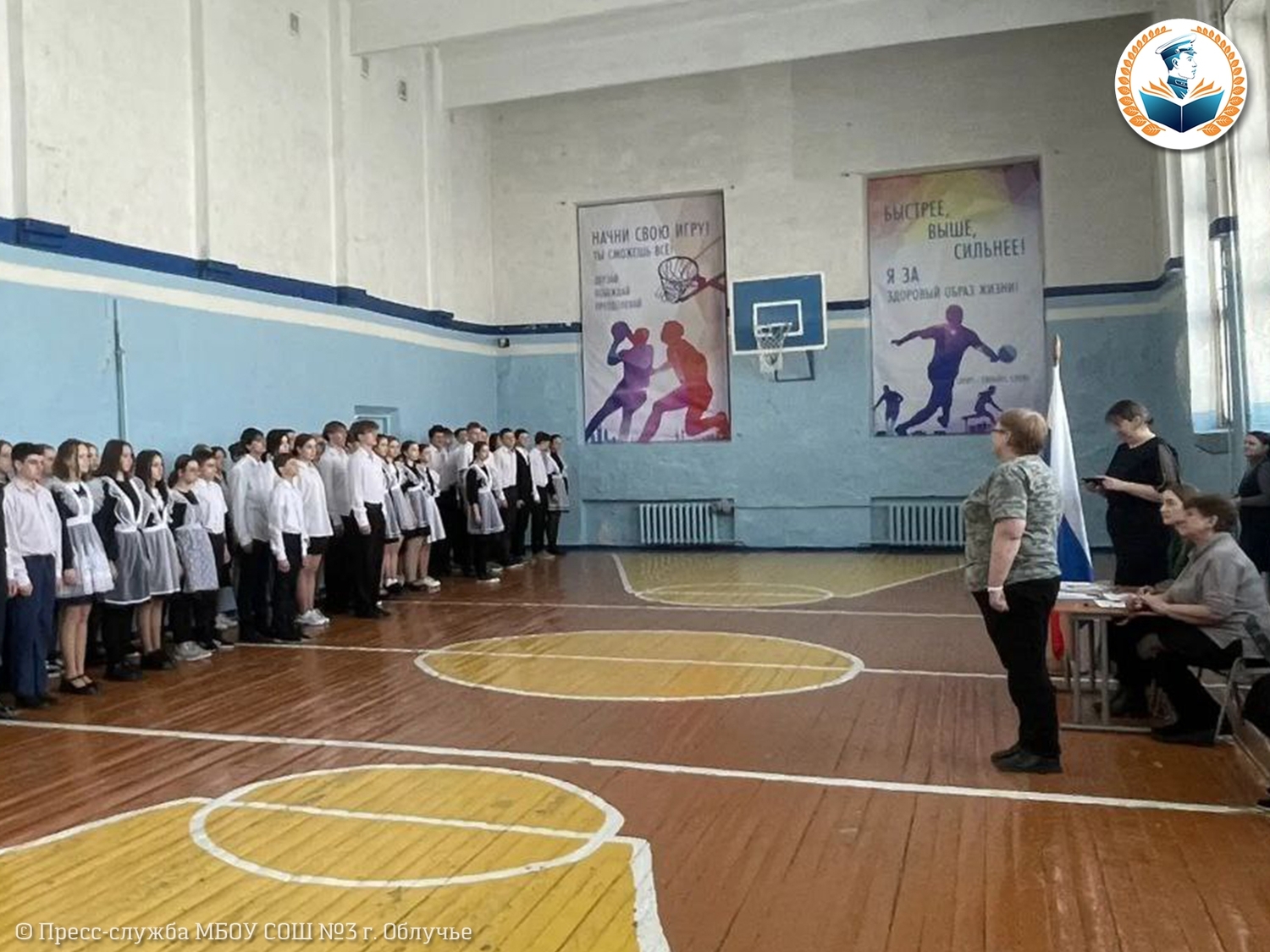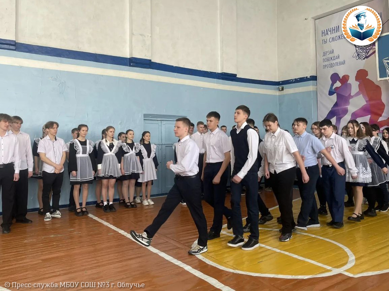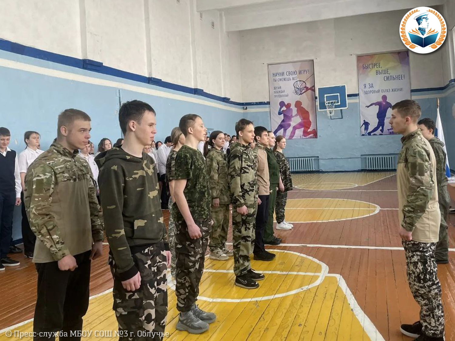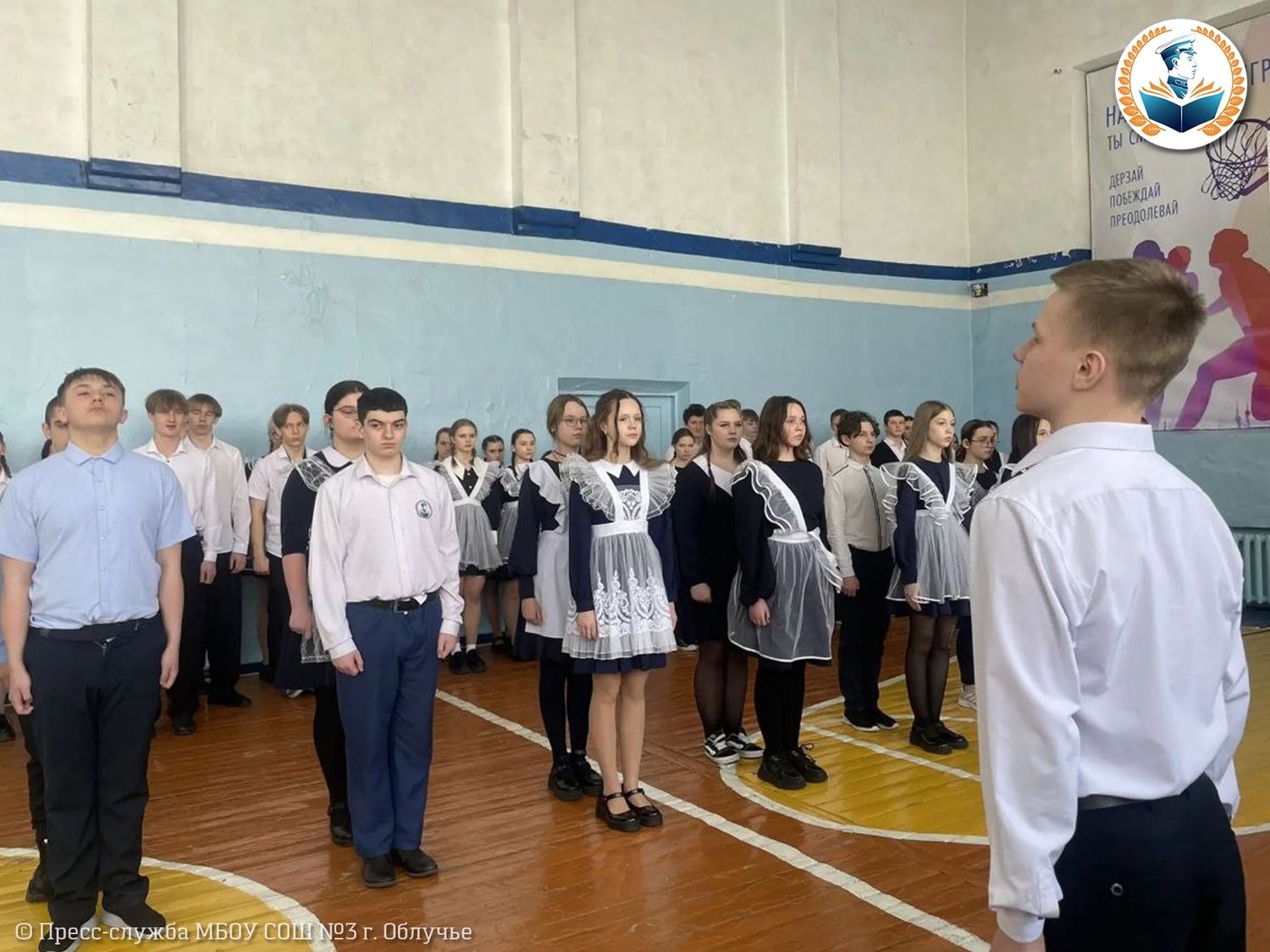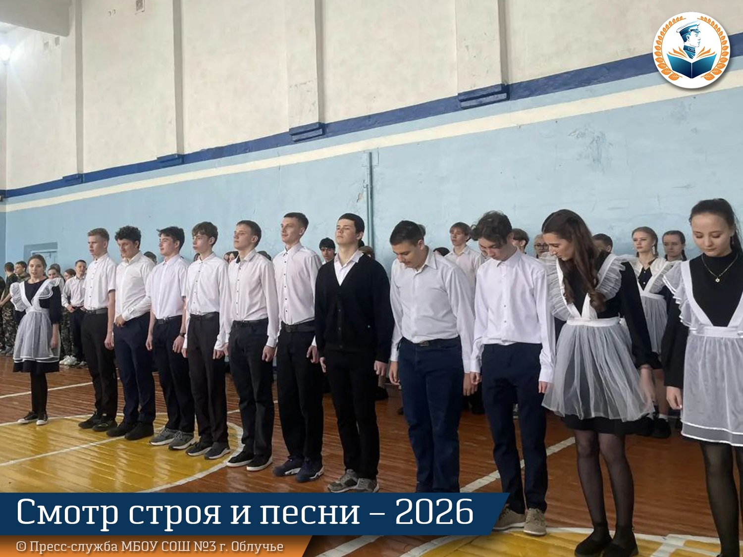 Традиционный «Смотр строя и песни» среди 8-11 классов посвящённый Дню защитника Отечества прошёл в МБОУ СОШ №3 г. Облучье.