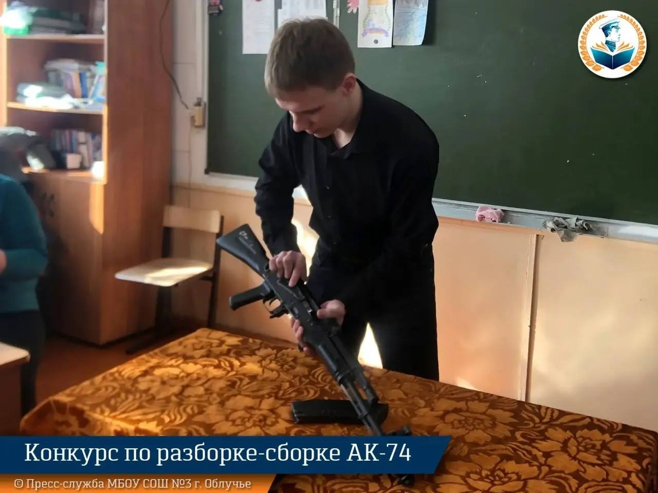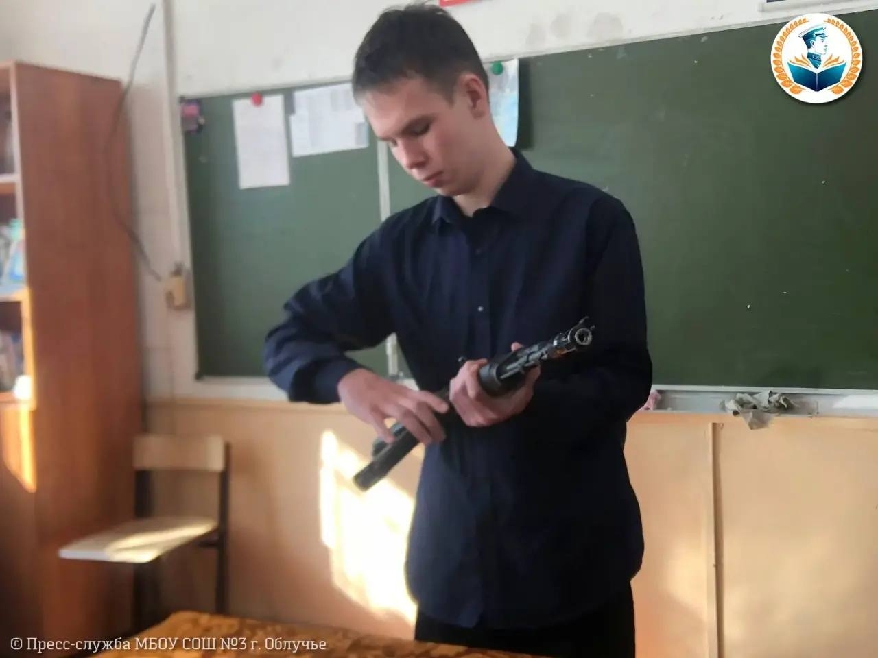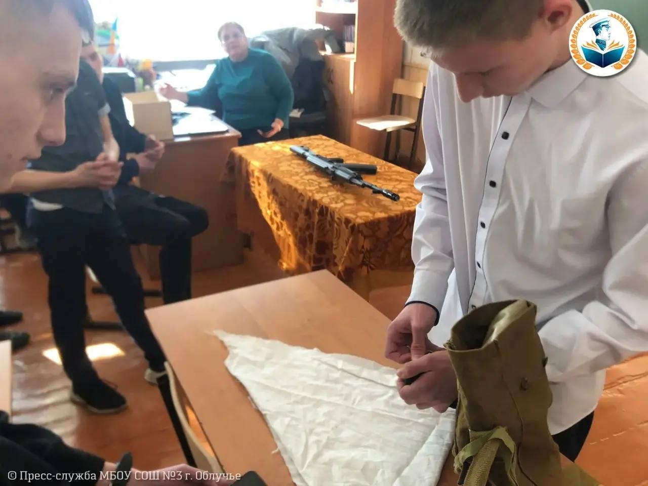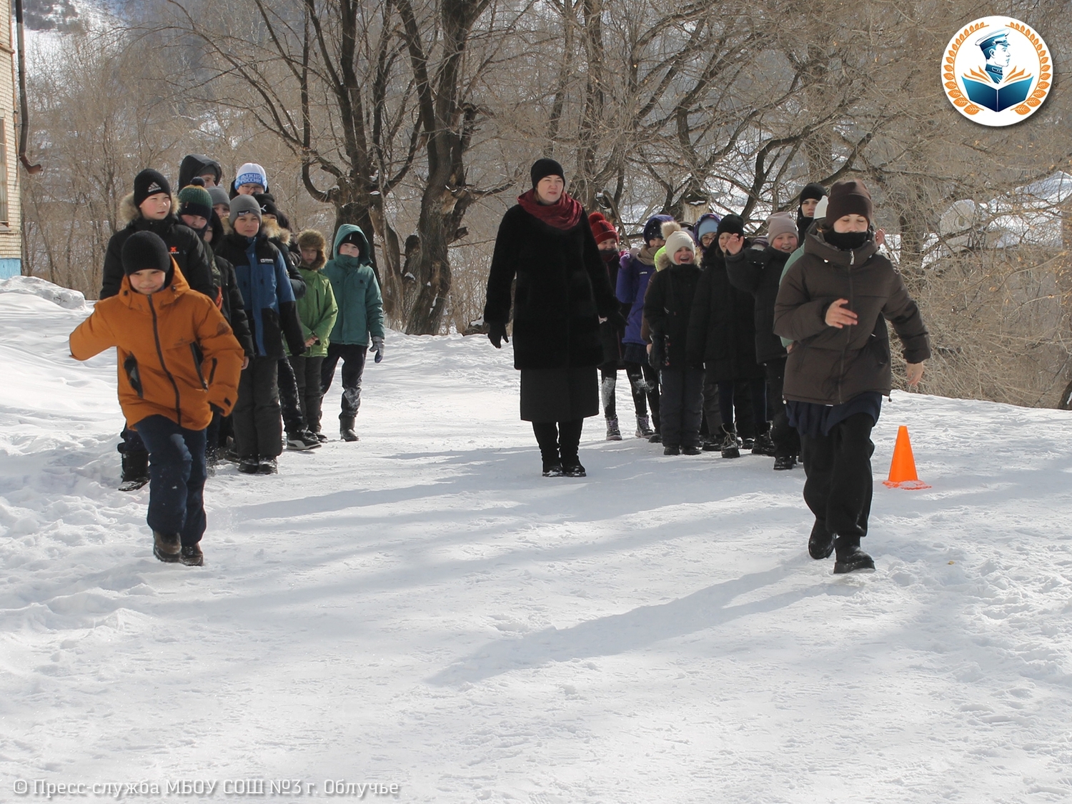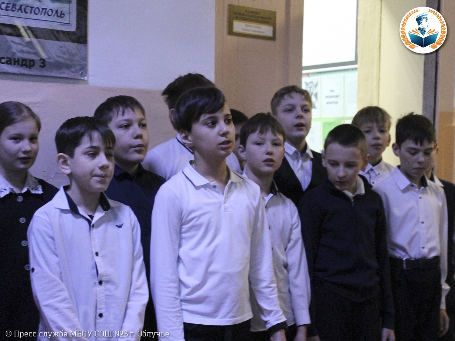 Традиционный «Смотр строя и песни» среди 8-11 классов посвящённый Дню защитника Отечества прошёл в МБОУ СОШ №3 г. Облучье.