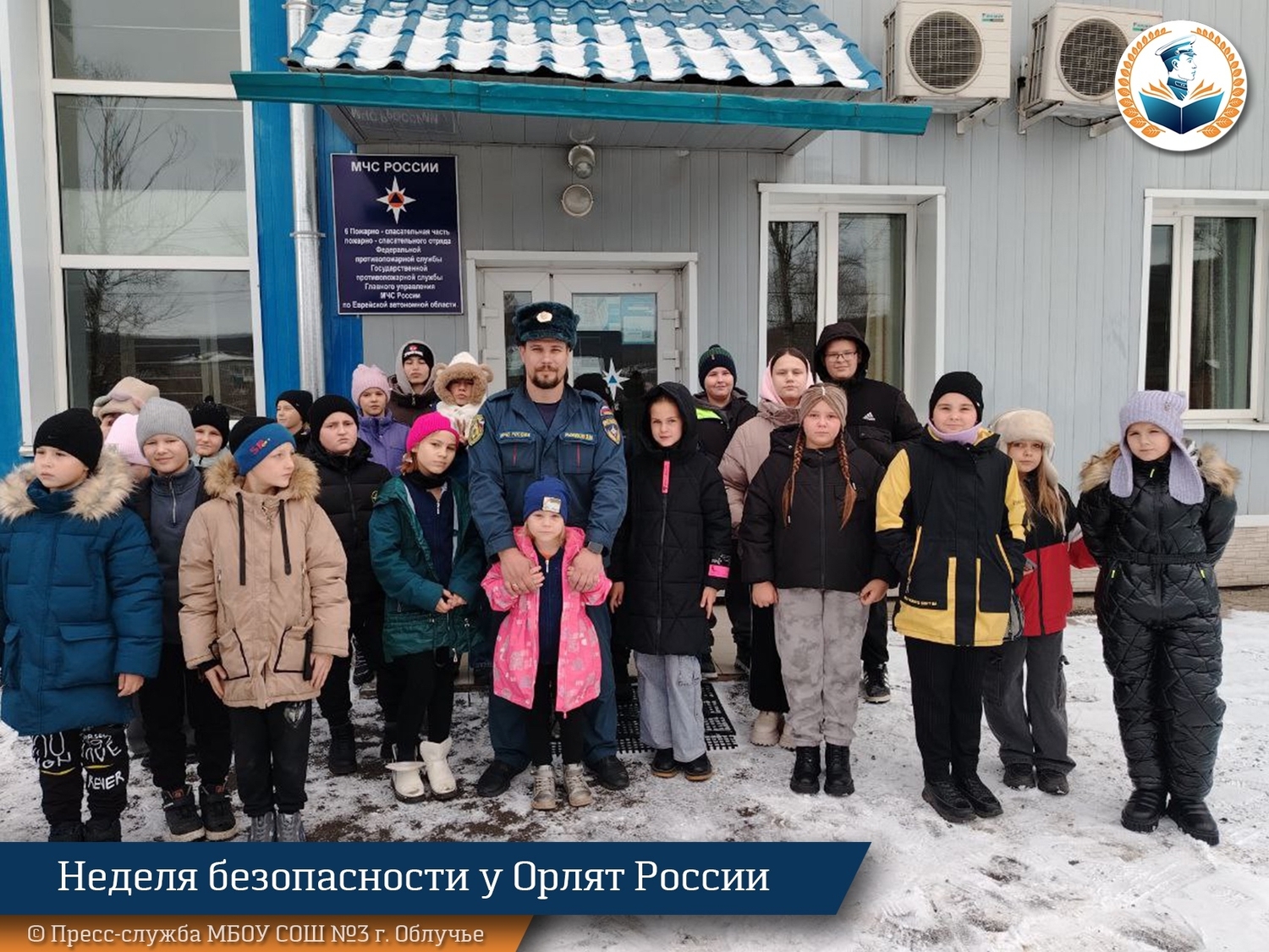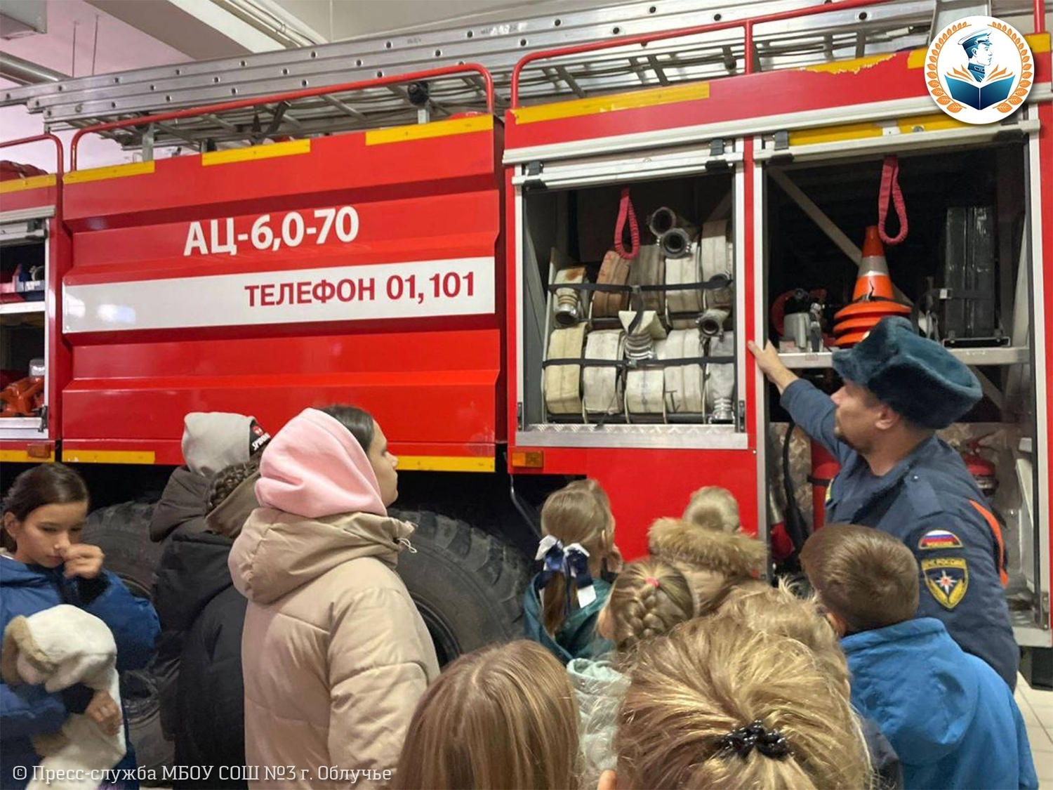 Ученики нашей школы МБОУ СОШ №3 г.Облучье состоящие в Орлята России побывали на экскурсии в пожарной части МЧС России.