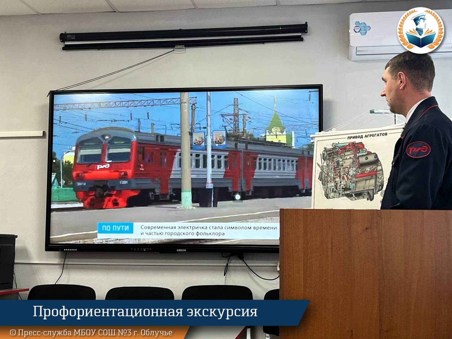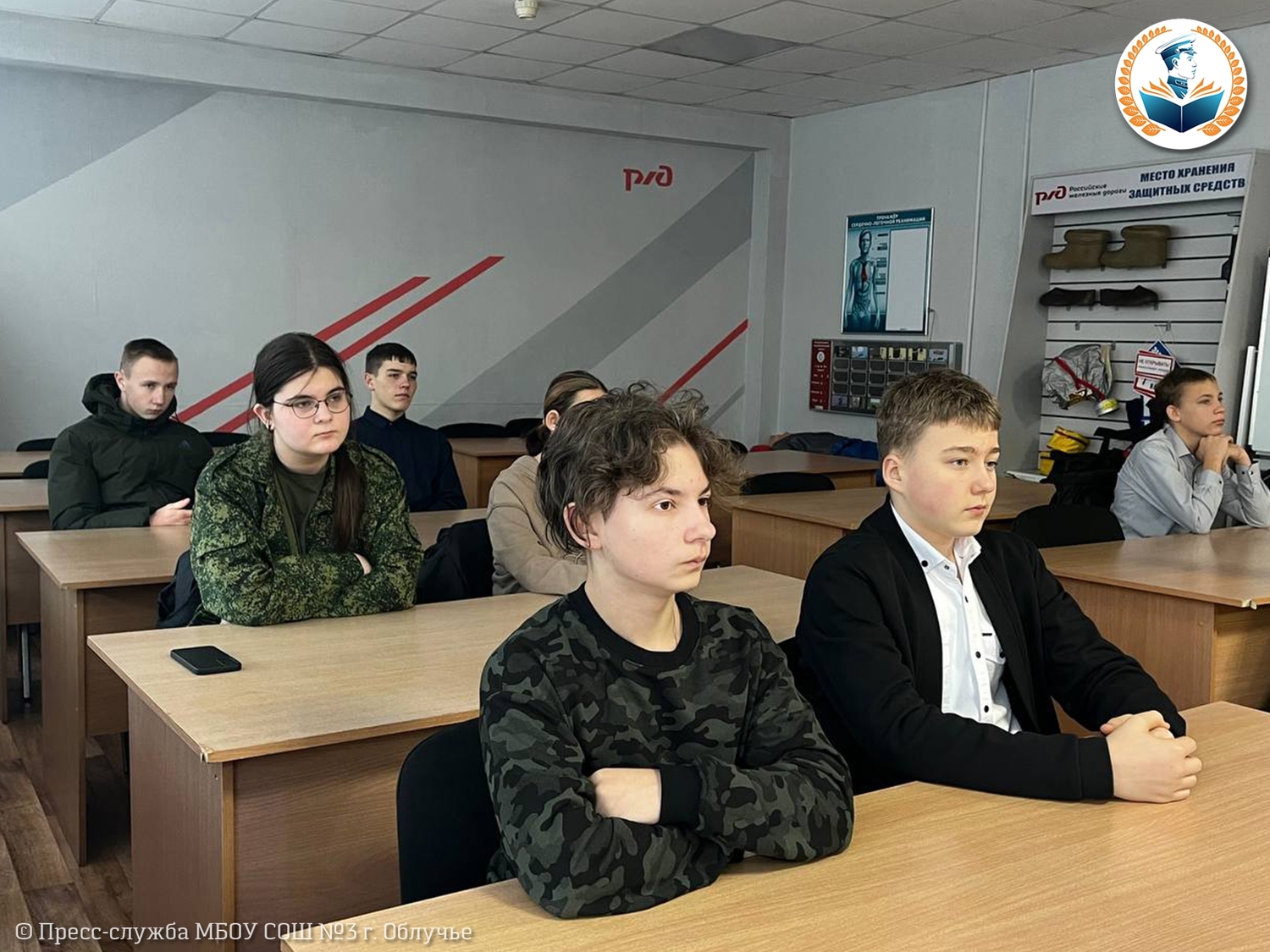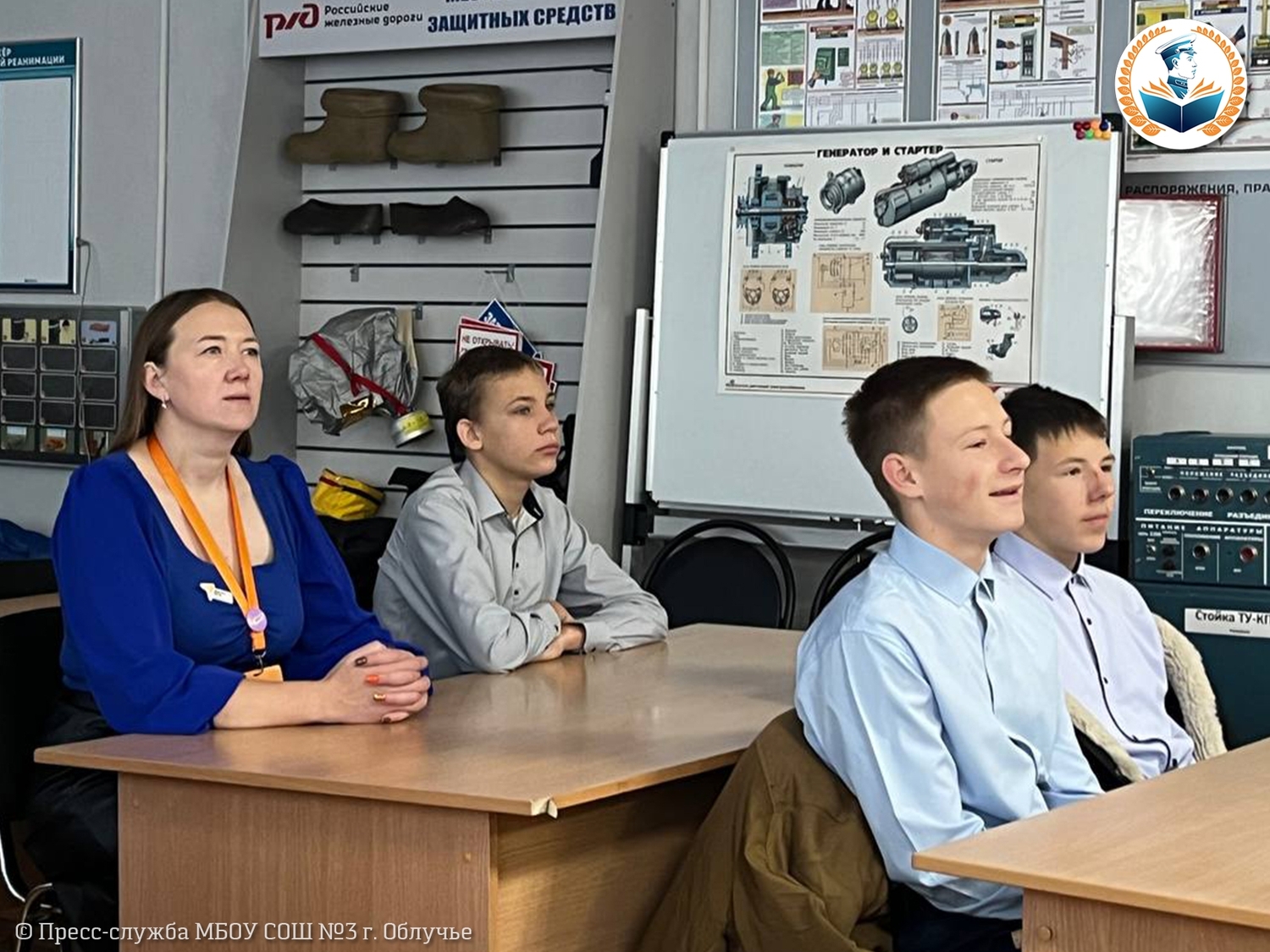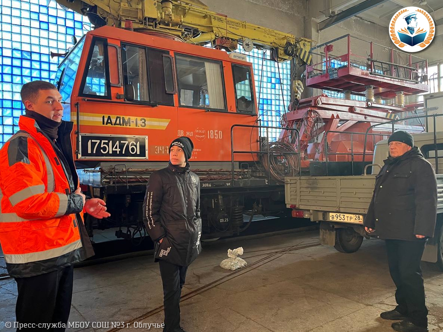 В этот день для учащихся 8-9 классов нашей школы была организована экскурсия на Облученскую дистанцию энергосбережения. Ребят встретил и сопровождал главный инженер дистанции Туманин Андрей Витальевич.