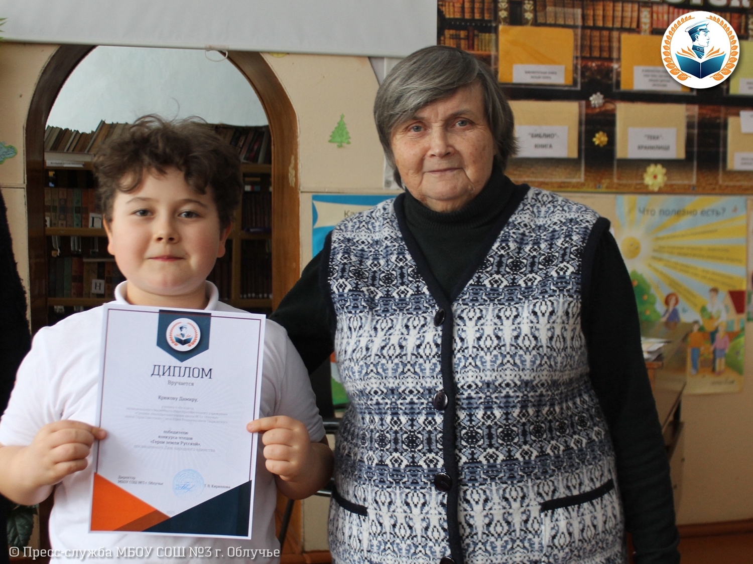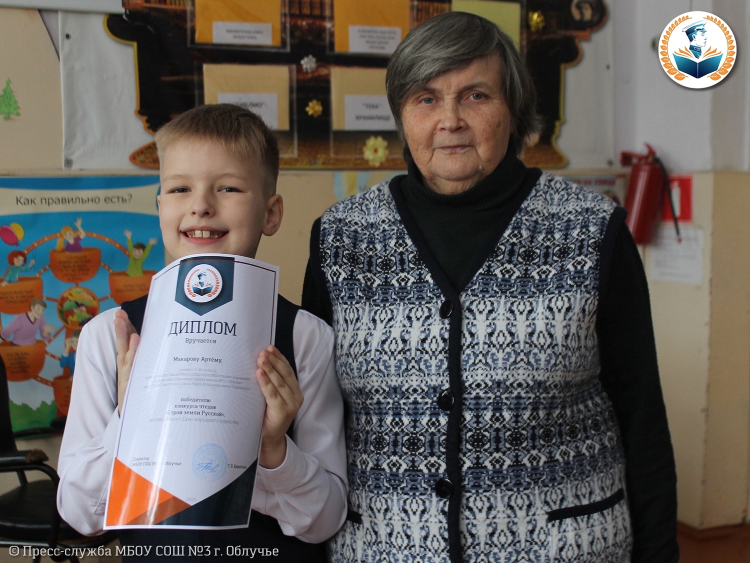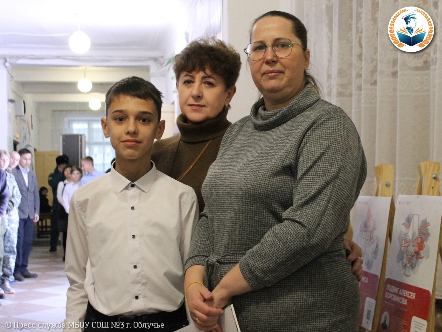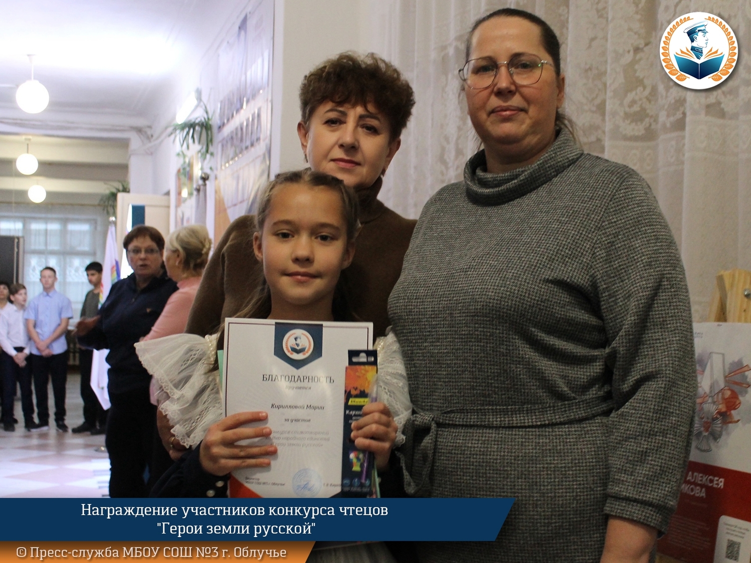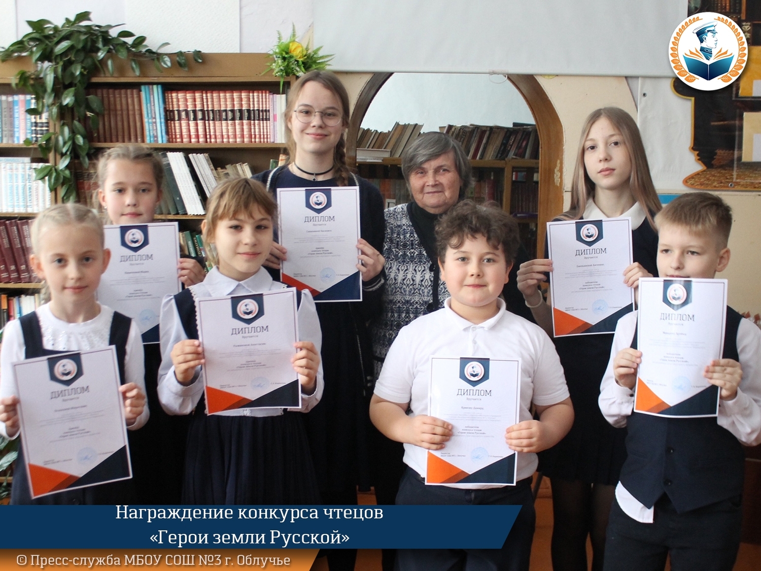 Торжественная церемония награждения победителей и призёров конкурса чтецов «Герои земли Русской» в МБОУ СОШ №3 г. Облучье.
