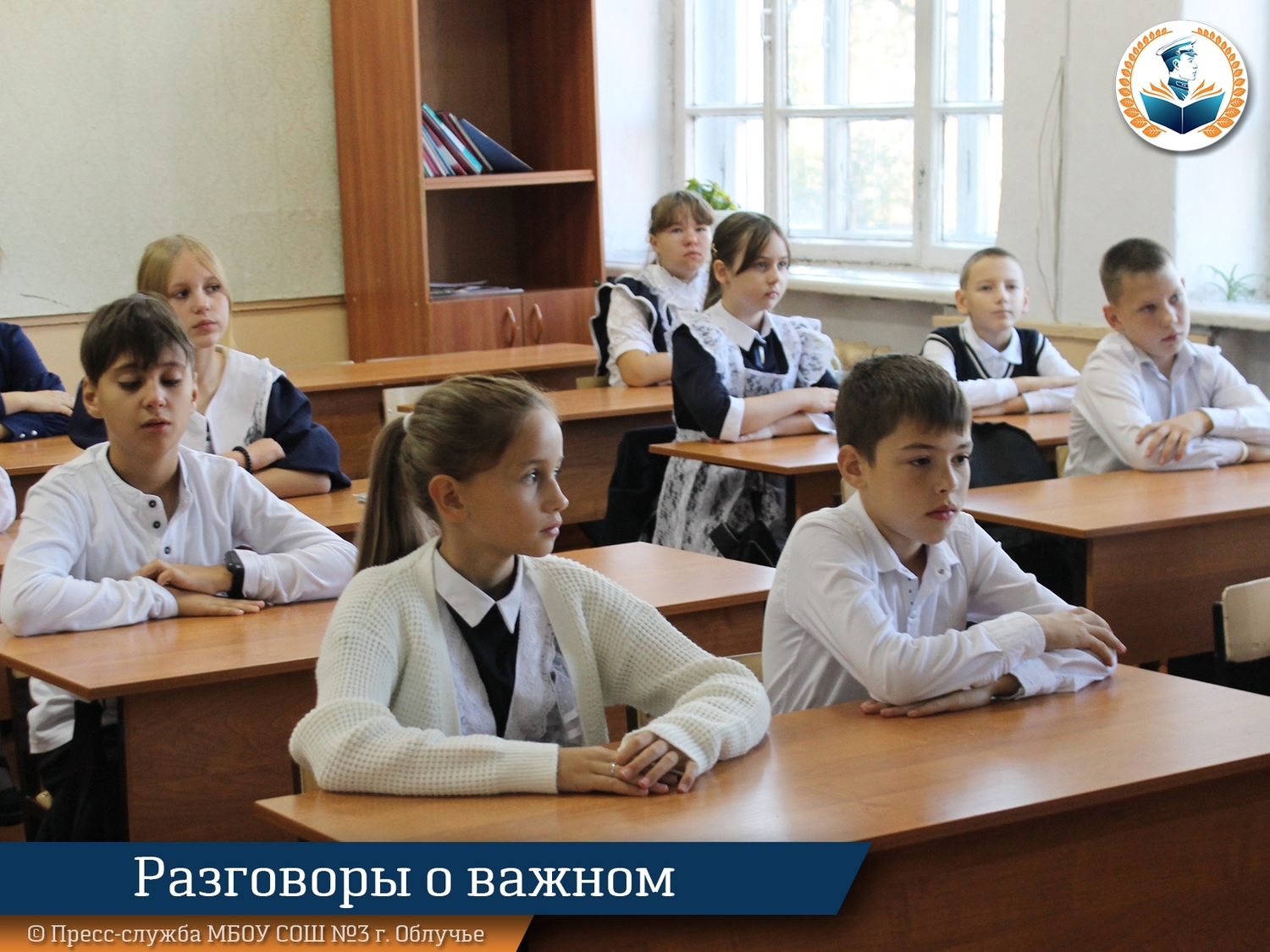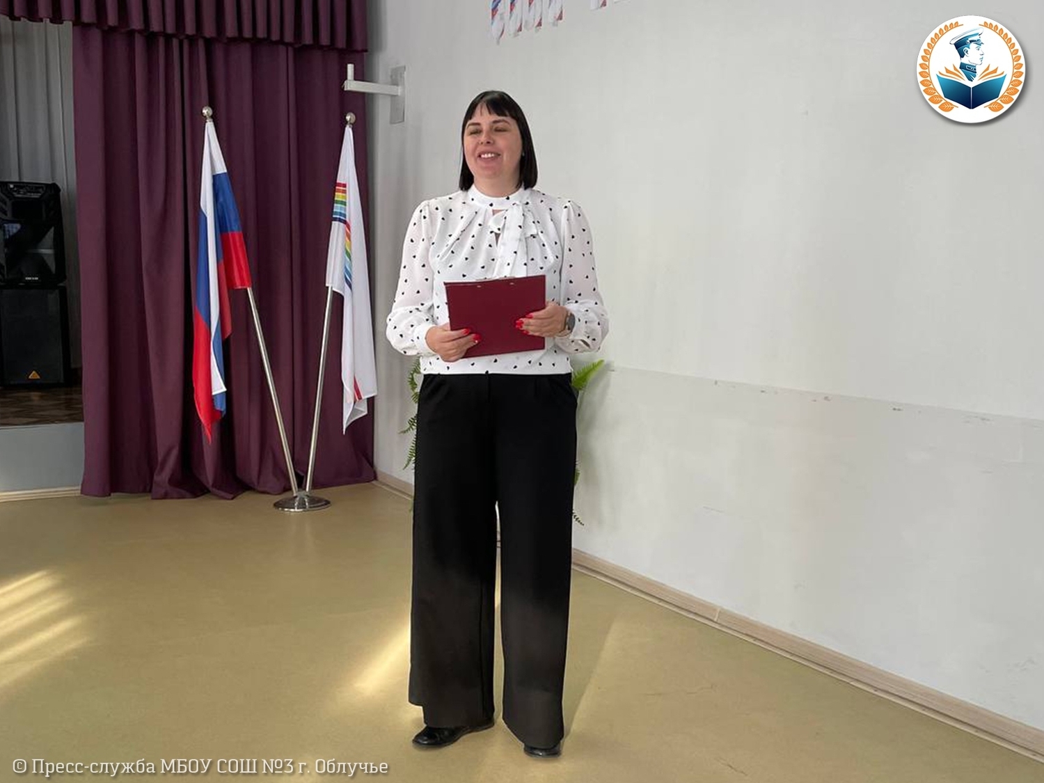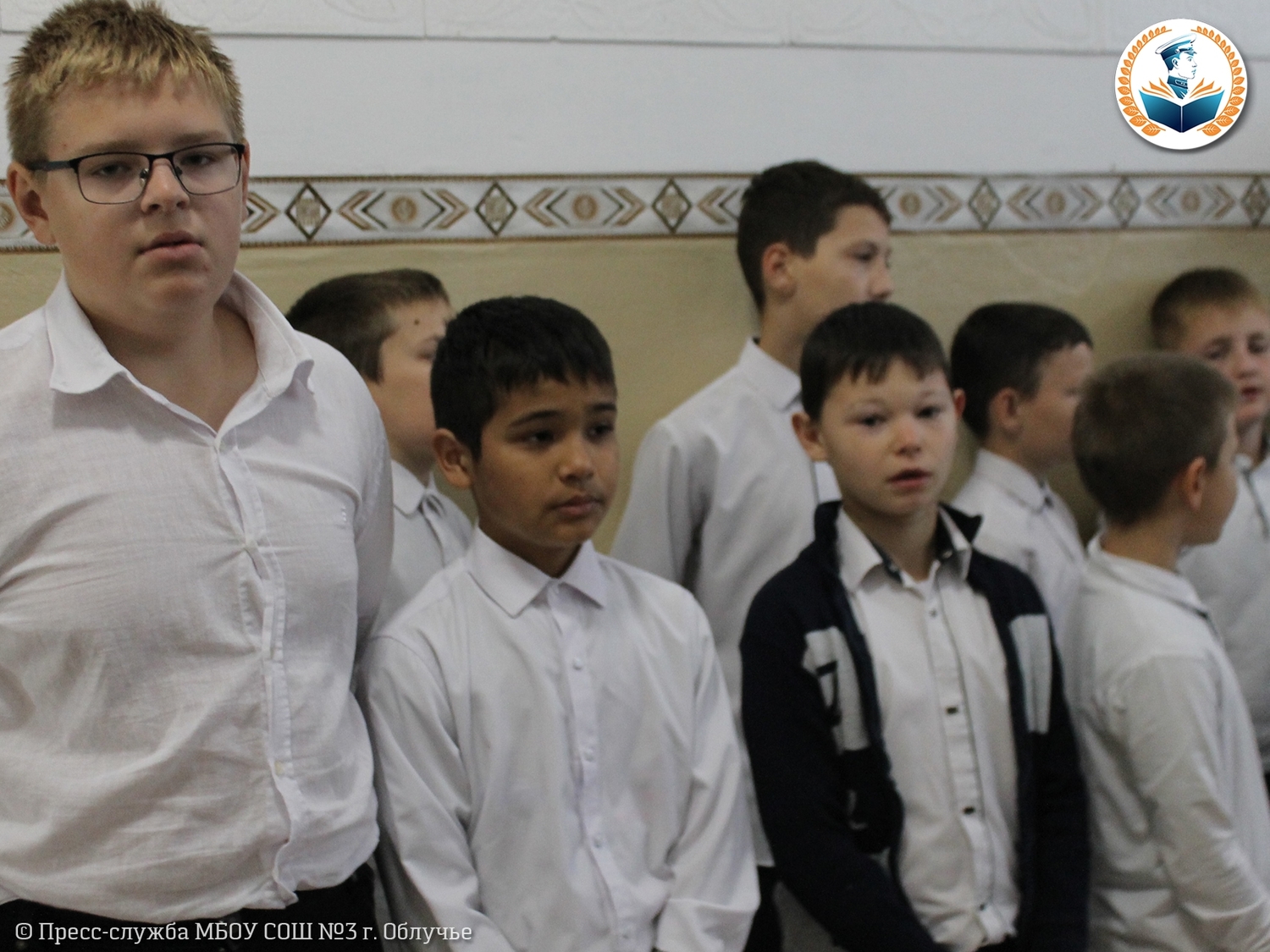По традиции, понедельник в МБОУ СОШ №3 г. Облучье начался с торжественного поднятия флага и исполнения гимна Российской Федерации.Также на торжественной линейке прошло награждение ребят игравших в районном соревновании по мини-футболу. Для учащихся был проведен классный час «Разговоры о важном» на тему «Творчество, которое объединяет».