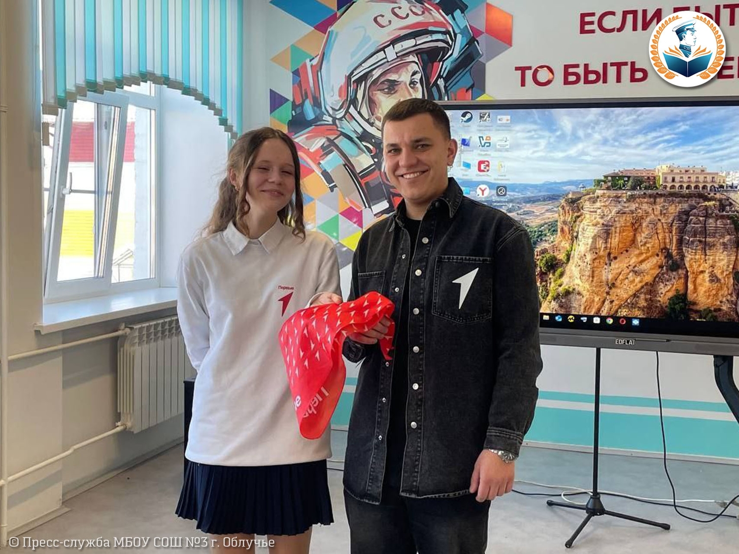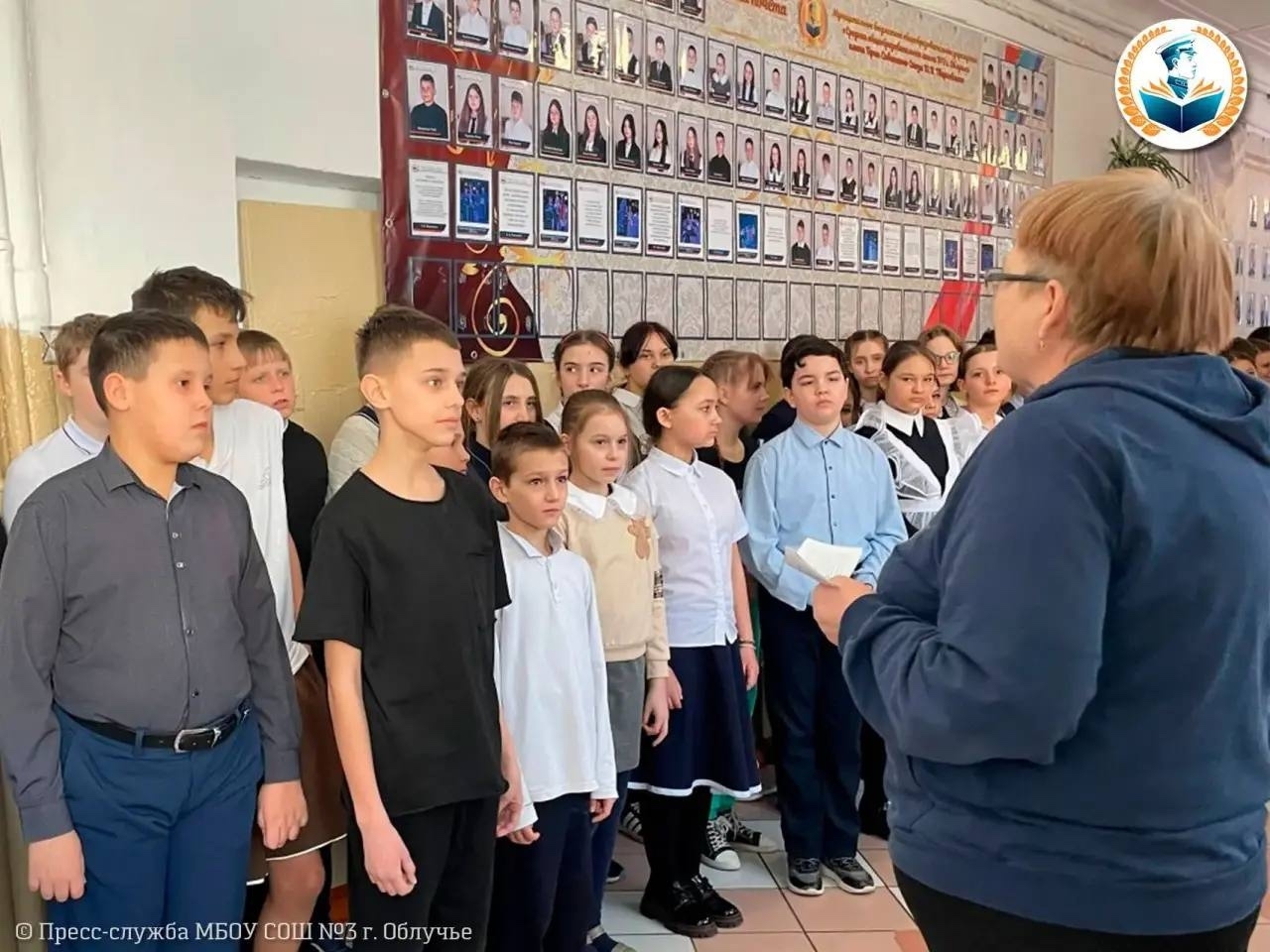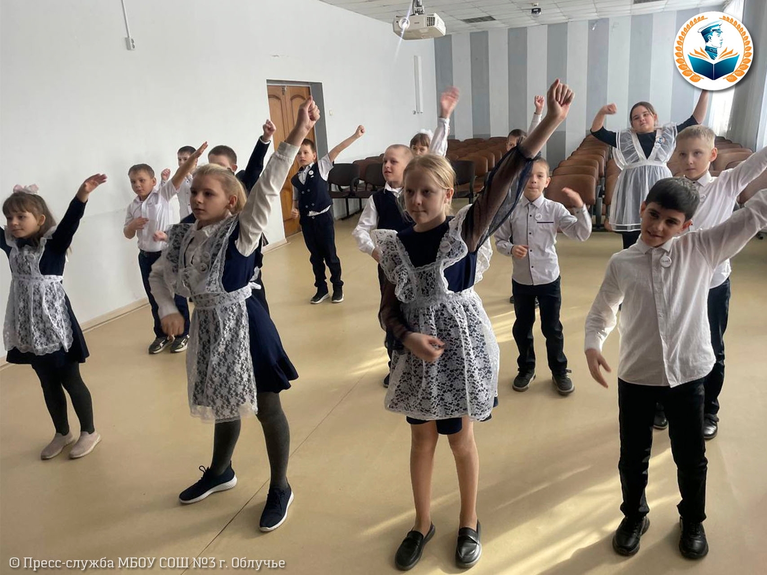 По традиции, понедельник в МБОУ СОШ №3 г. Облучье начался с торжественного поднятия флага и исполнения гимна Российской Федерации.Также на торжественной линейке прошло награждение ребят игравших в районном соревновании по мини-футболу. Для учащихся был проведен классный час «Разговоры о важном» на тему «Творчество, которое объединяет».