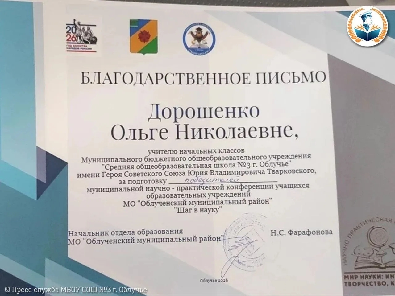 Муниципальная научно-практическая конференция «Шаг в науку» прошла в МБОУ СОШ №2 г. Облучье.