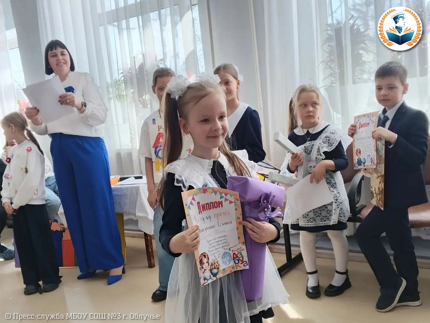 Финал праздника стал поистине торжественным моментом: классные руководители Мальцева Ирина Анатольевна (1 «А» класс) и Бабицына Виолетта Сергеевна (1 «Б» класс) вручили ребятам удостоверения «Азбуку прочёл!» и медали. Первая серьёзная награда первоклассников станет фундаментом для дальнейших побед и получения новых знаний.