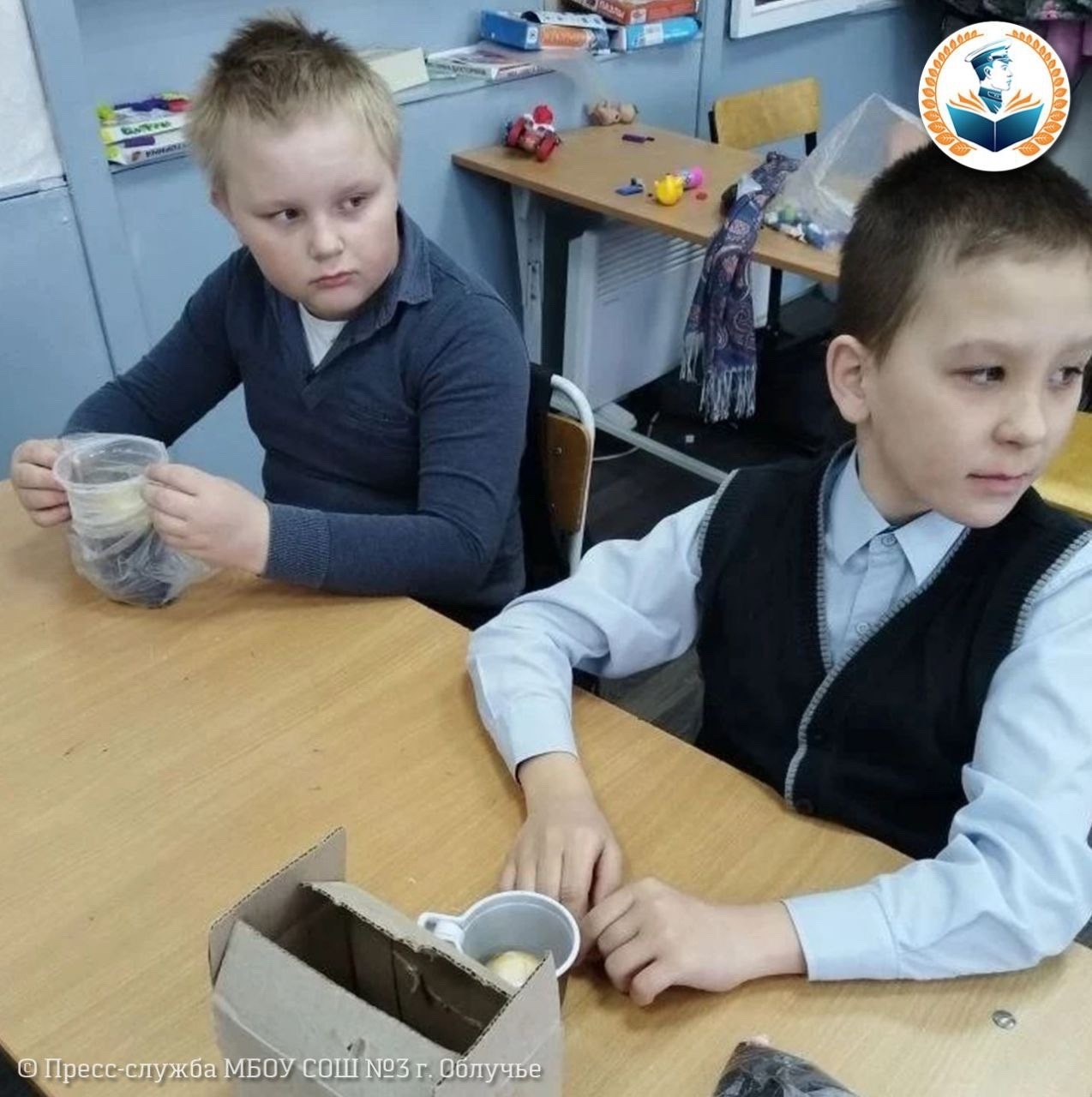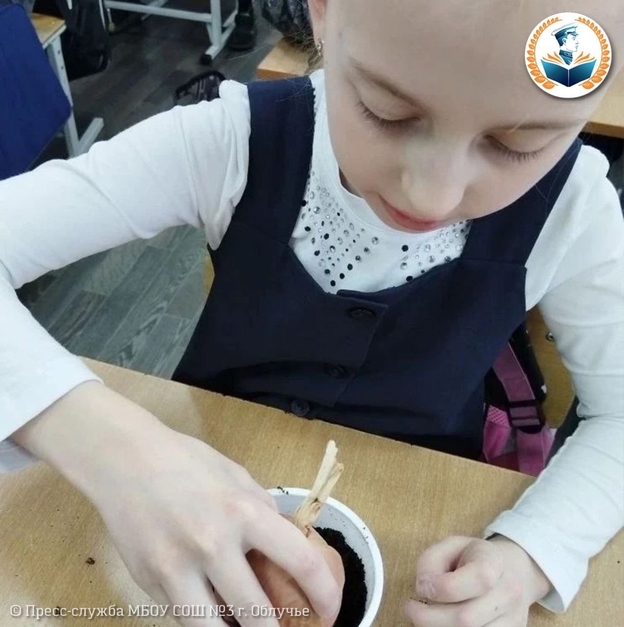 Ребята решили повторно использовать пластиковые стаканчики и тем самым помочь природе и вырастить полезный и витаминный лук для школьной столовой. Каждый принес уже использованный пластиковый стаканчик, луковицу и немного земли.