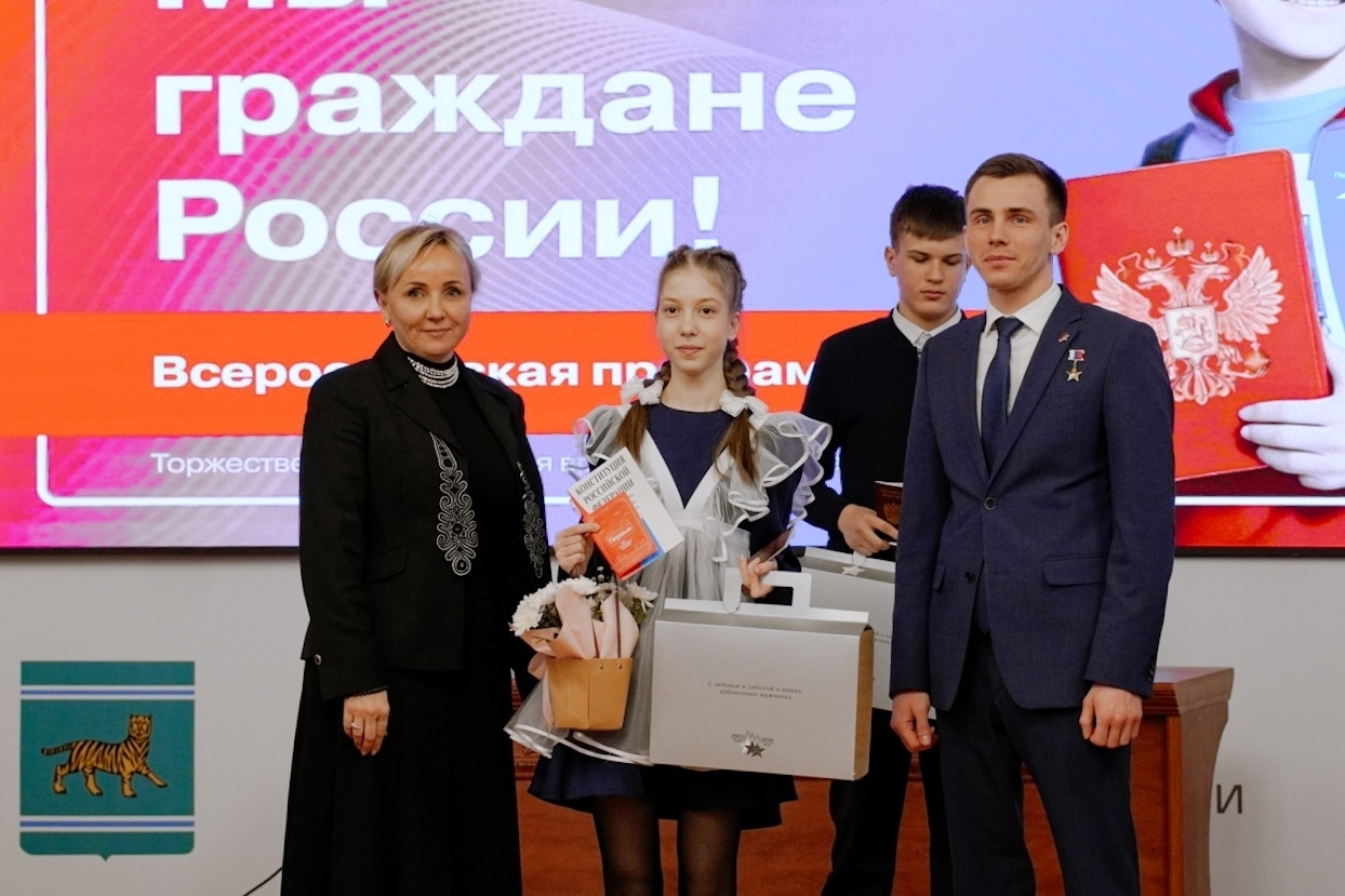 Торжественная церемония вручения паспортов в рамках Всероссийской акции «Мы — граждане России!» прошла в Правительстве Еврейской автономной области при поддержке губернатора Марии Костюк.