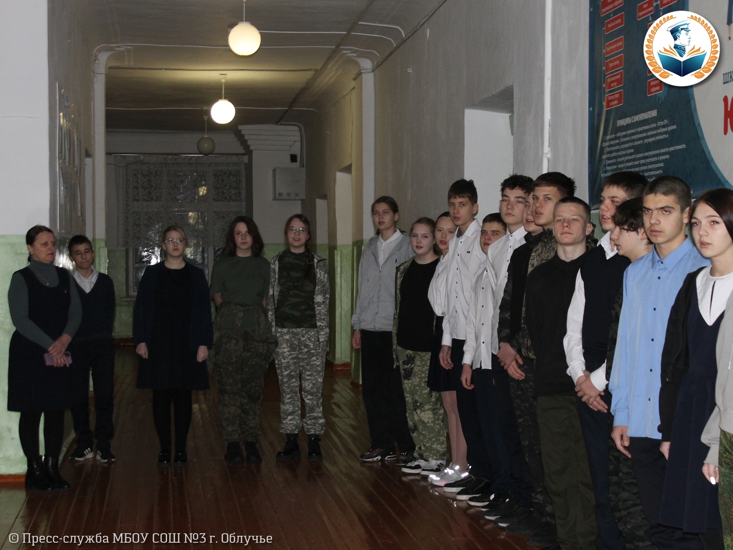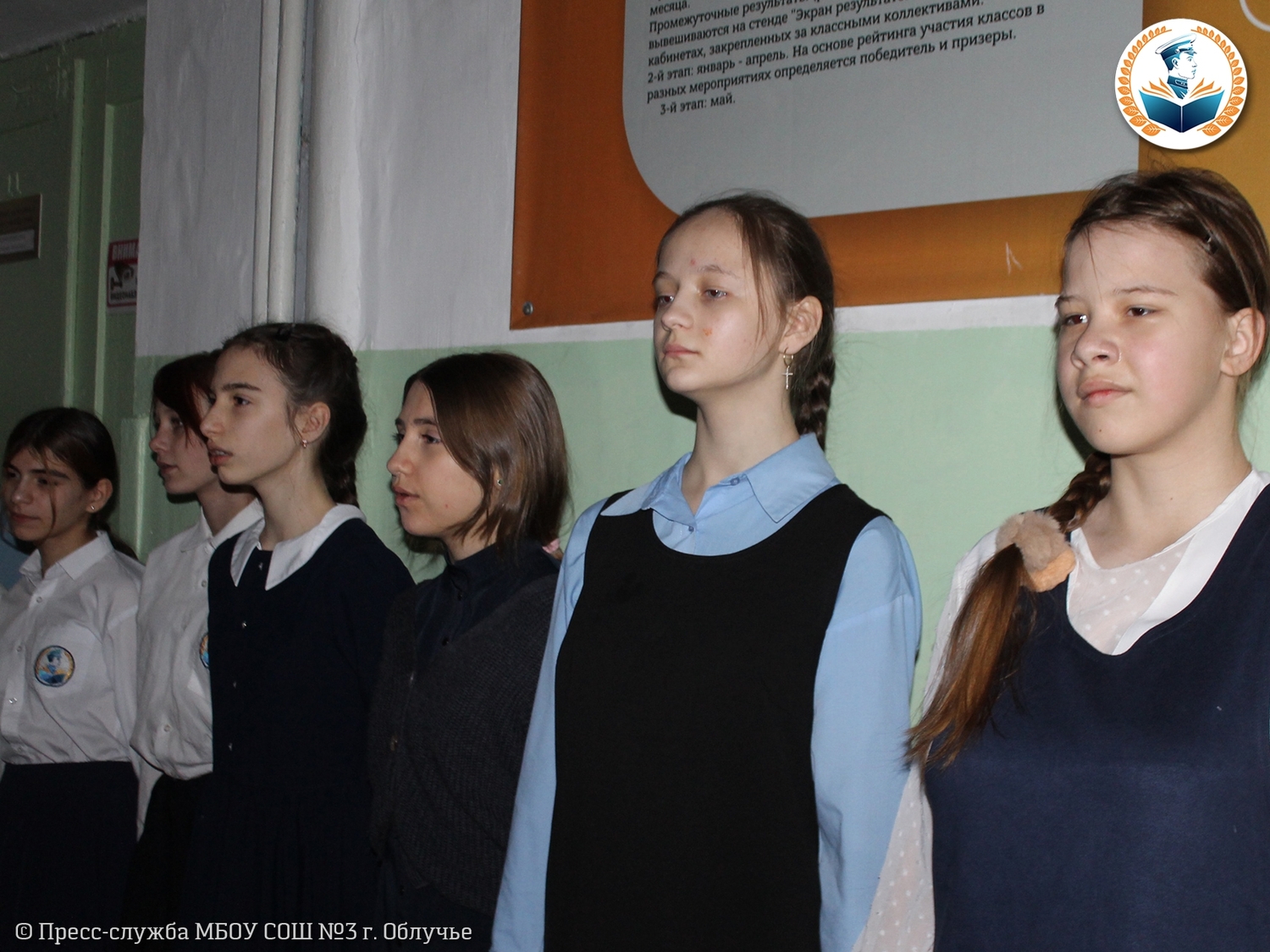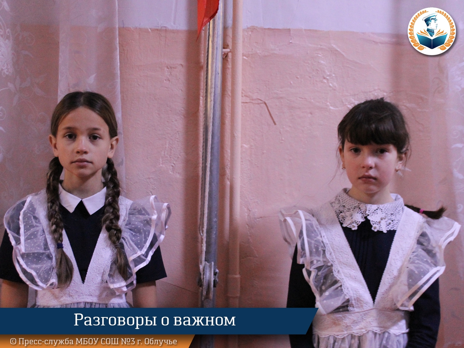По традиции, понедельник в МБОУ СОШ №3 г. Облучье начался с торжественного поднятия флага и исполнения гимна Российской Федерации. Для учащихся был проведен классный час «Разговоры о важном» на тему «Что говорит совесть?».