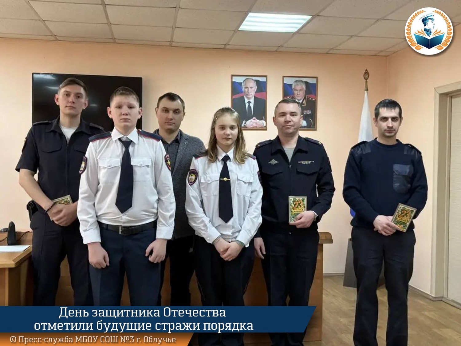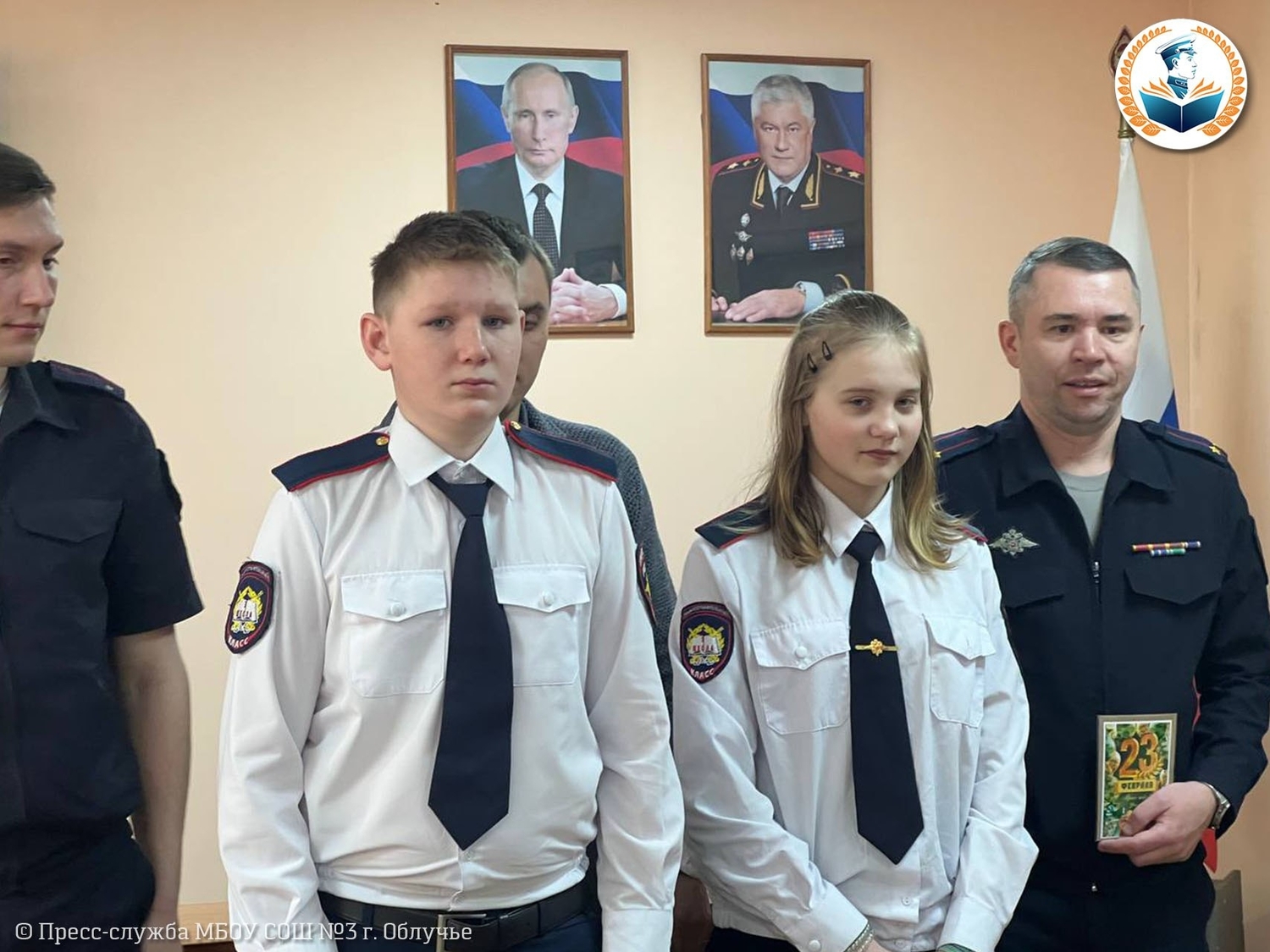 Накануне праздника Дня защитника Отечества ученики правоохранительного класса посетили сотрудников Министерства внутренних дел, чтобы поздравить своих наставников и будущих коллег с профессиональным праздником.