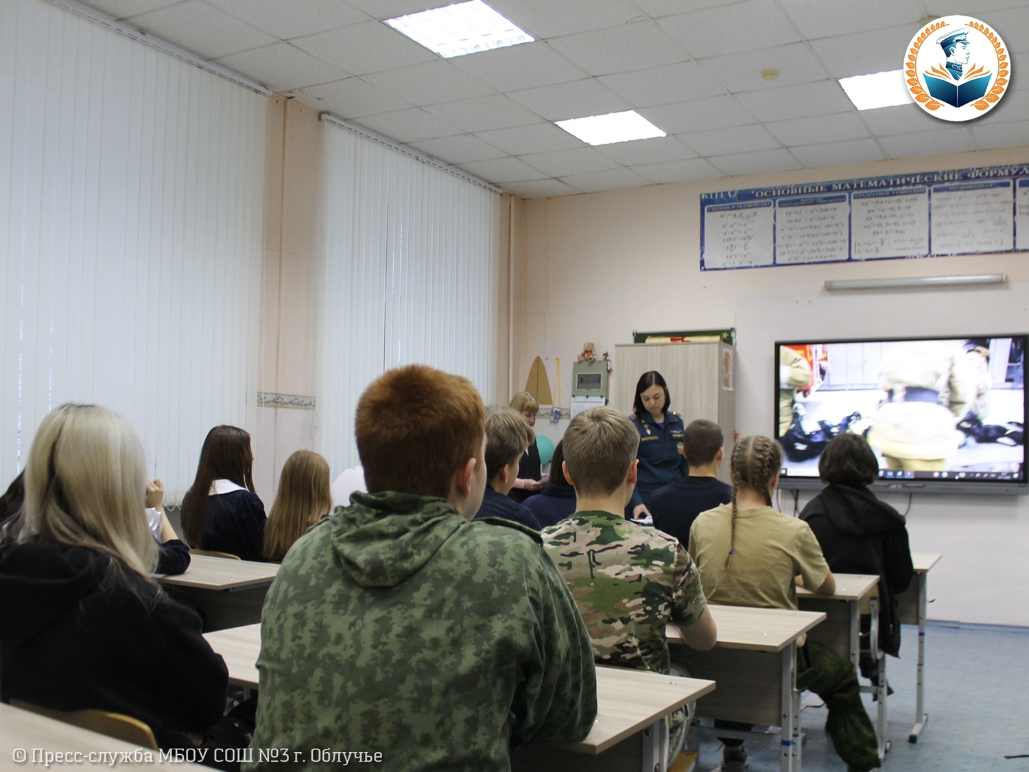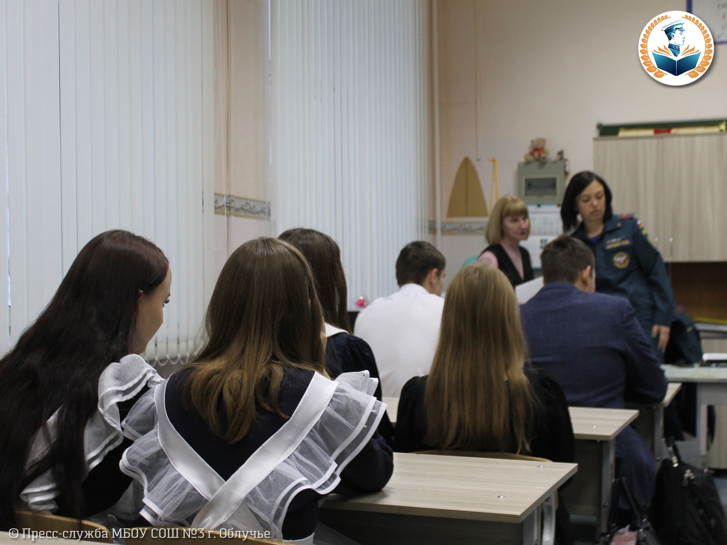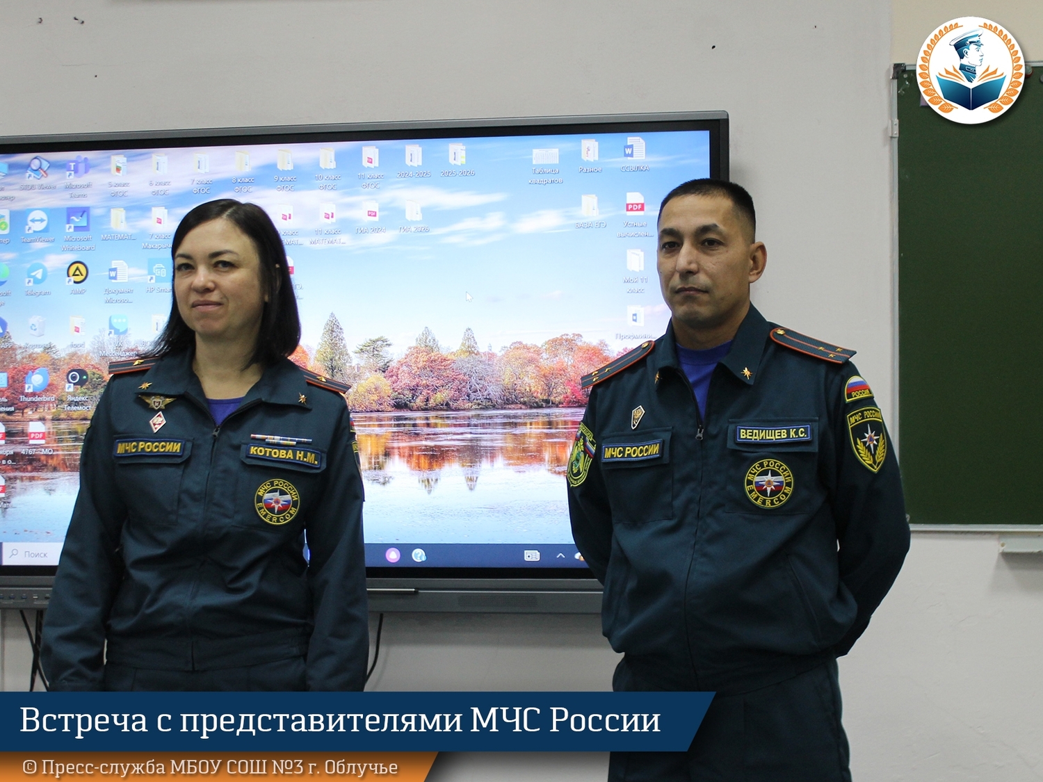 В нашей школе прошла встреча с дознавателями отдела надзорной деятельности и профилактической работы МЧС России по Облученскому району Надеждой Котовой и Константином Ведищевым.