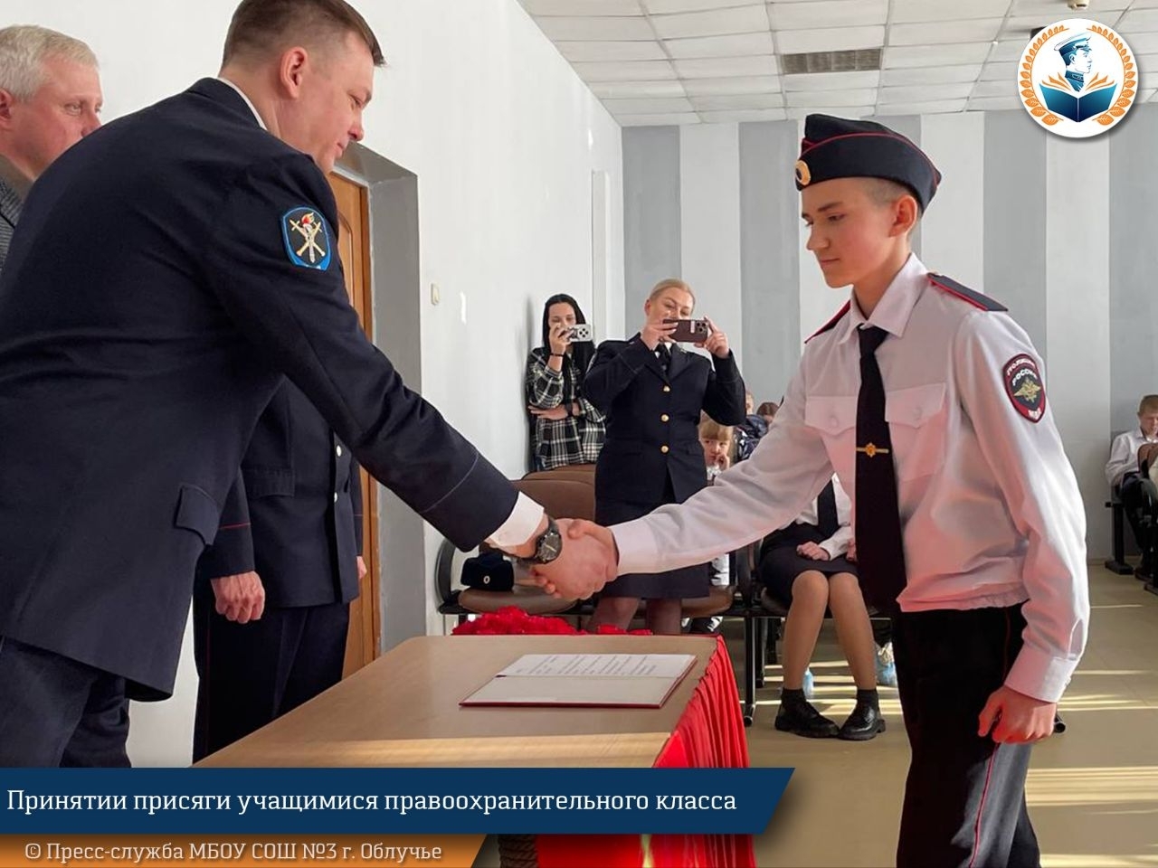 В преддверии Дня сотрудника органов внутренних дел в нашей школе прошло памятное мероприятие, первые ученики правоохранительного класса приняли торжественную присягу.