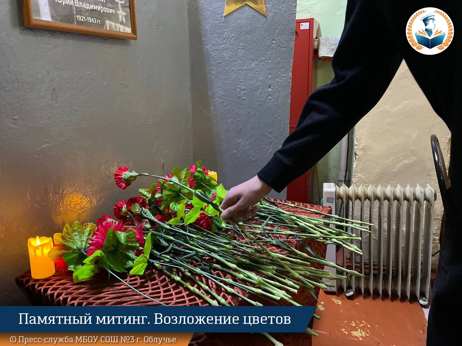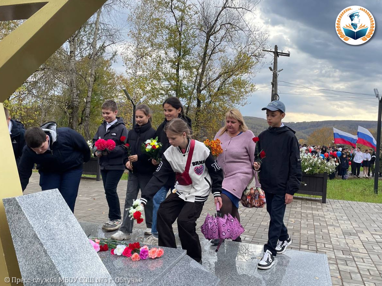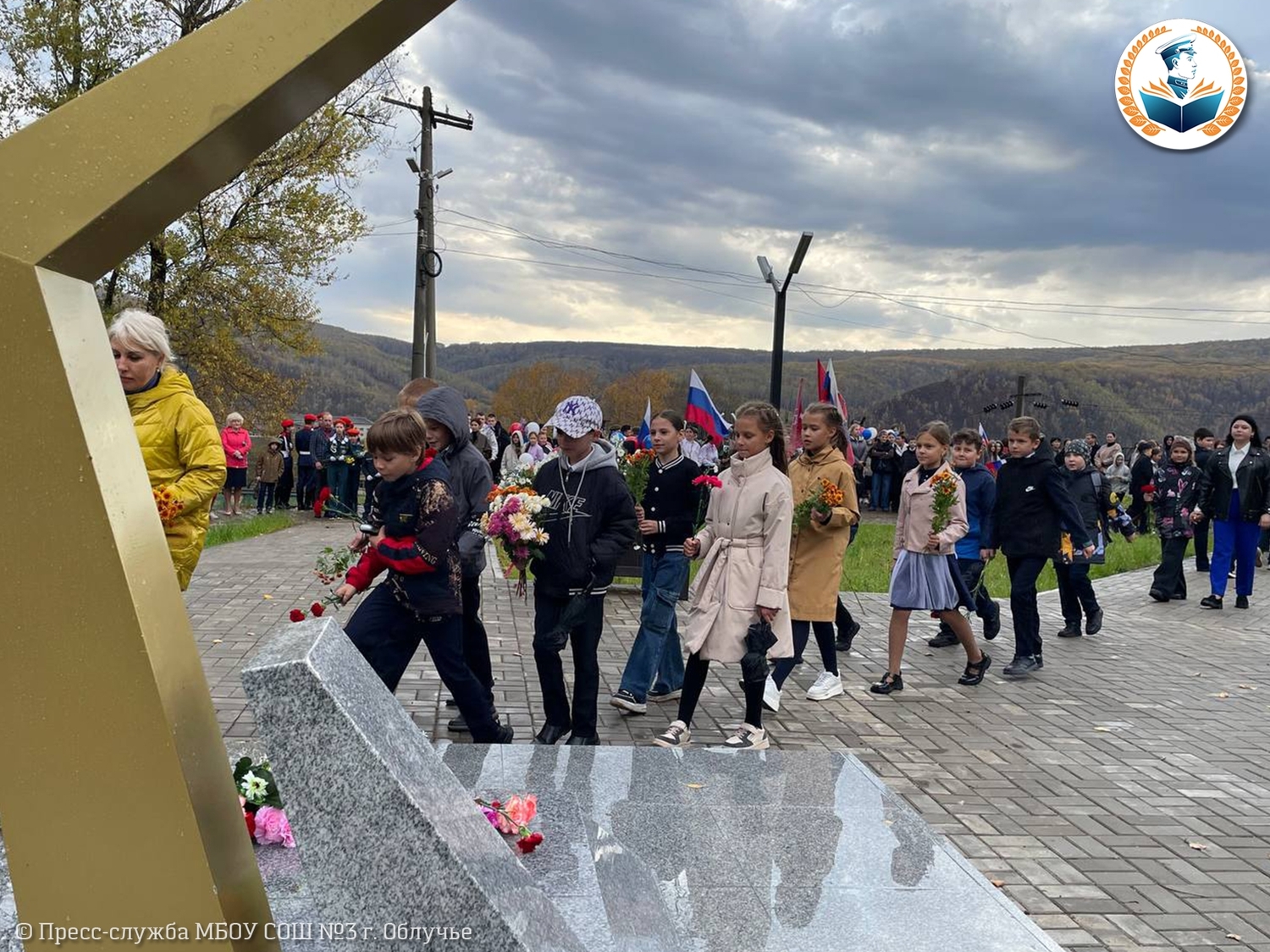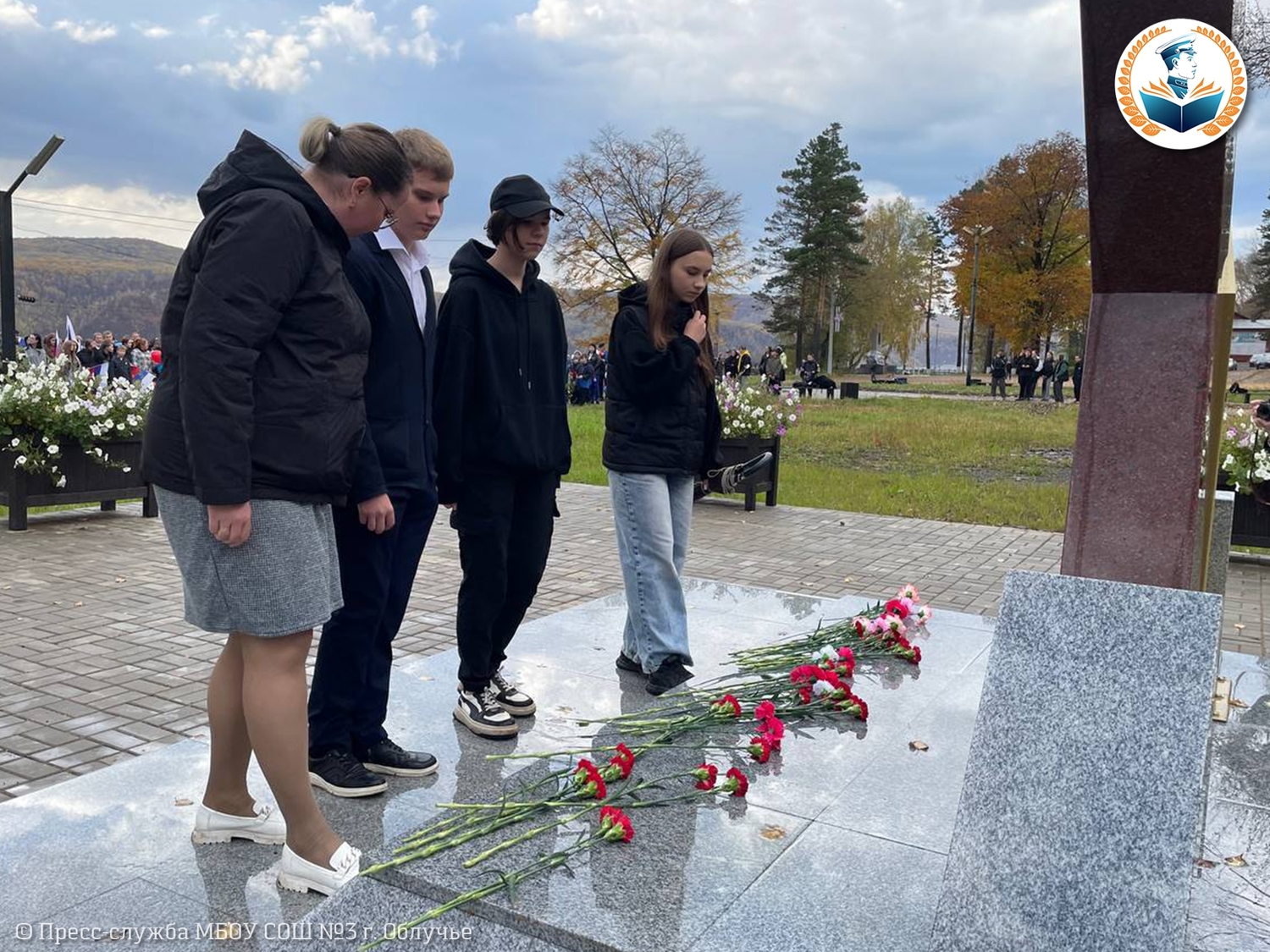 По окончанию митинга были возложены живые цветы к подножию стелы. Этот жест — не просто формальность, а искренняя дань уважения.