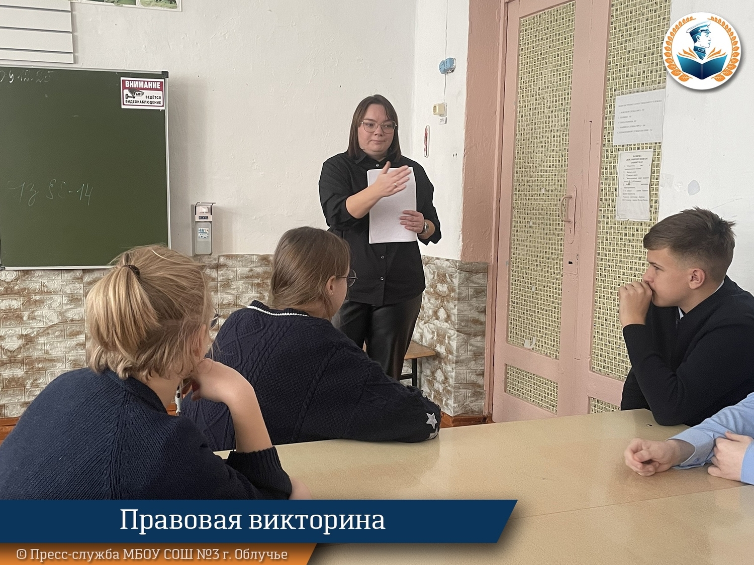 Увлекательная викторина, посвященная основам права прошла для учащихся 8 -11 классов в МБОУ СОШ №3 г. Облучье.
