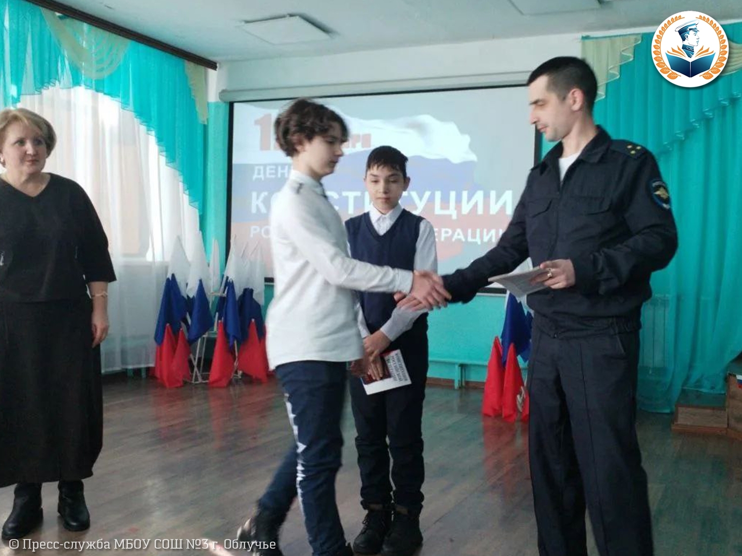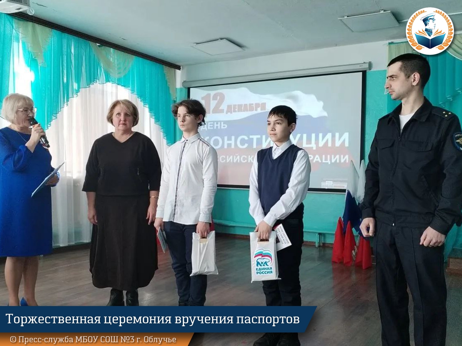 В День Конституции в библиотеке г. Облучье состоялась торжественная церемония вручения паспортов юным гражданам Российской Федерации. Паспорт вручили ученику нашей школы Фатневу Михаилу.