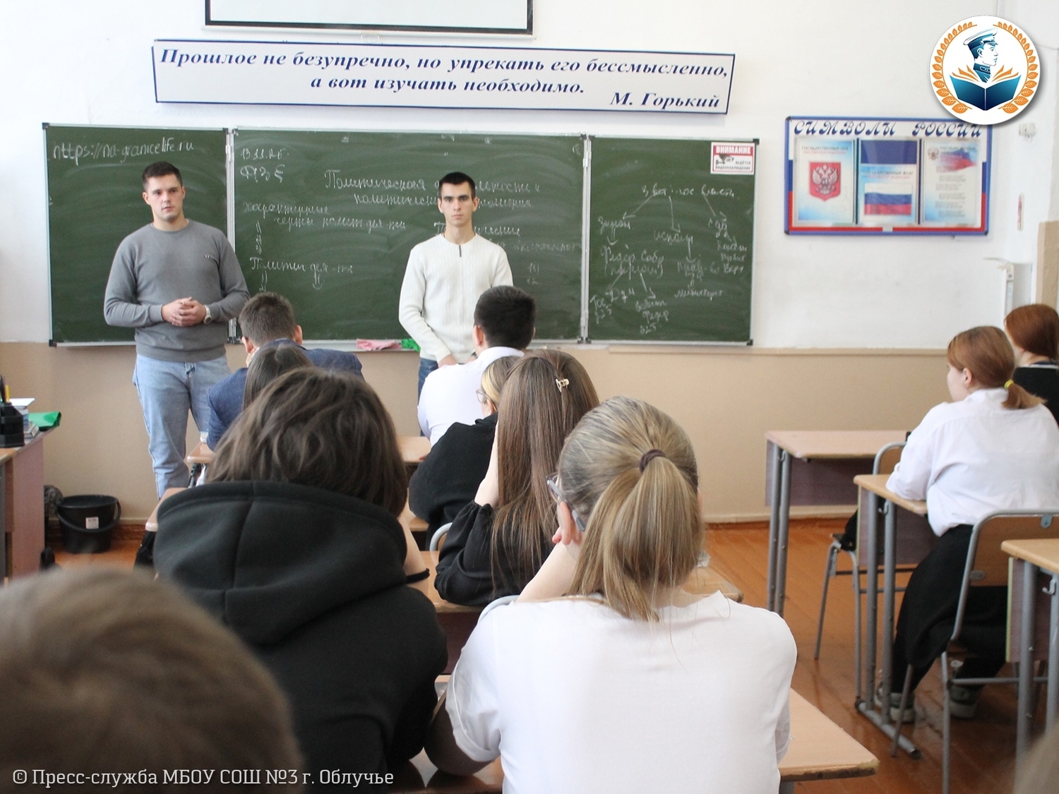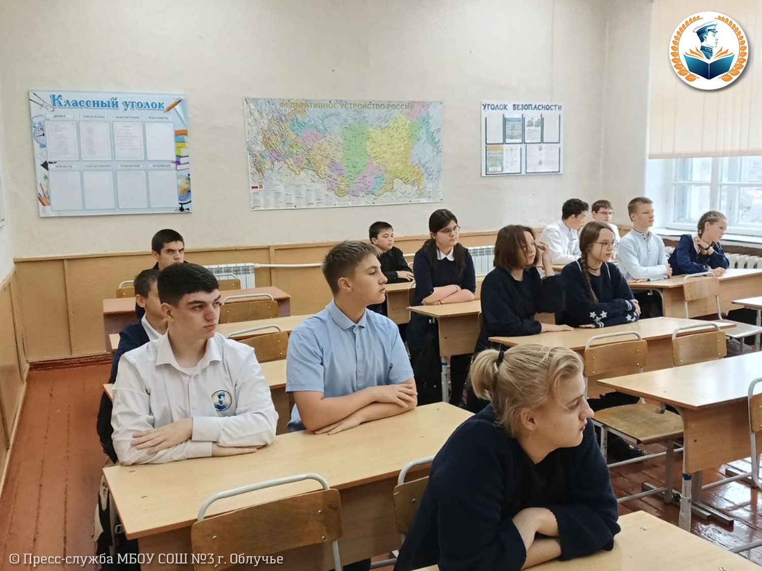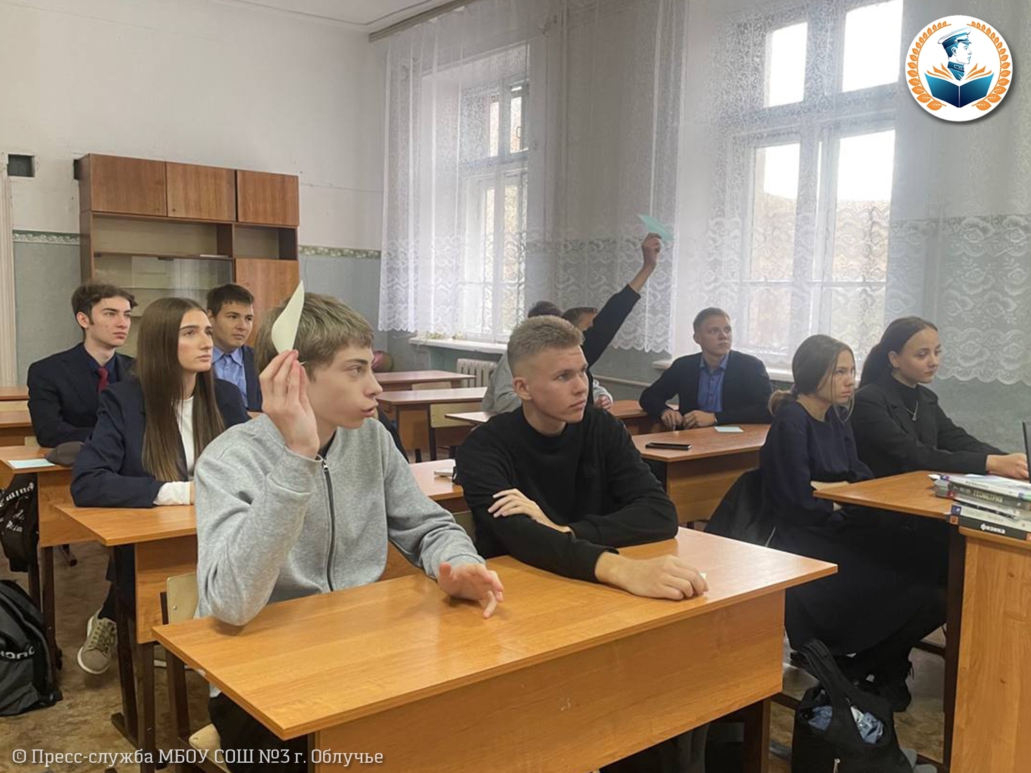 Правовой час прошёл сегодня у десятого класса в МБОУ СОШ №3 г. Облучье.