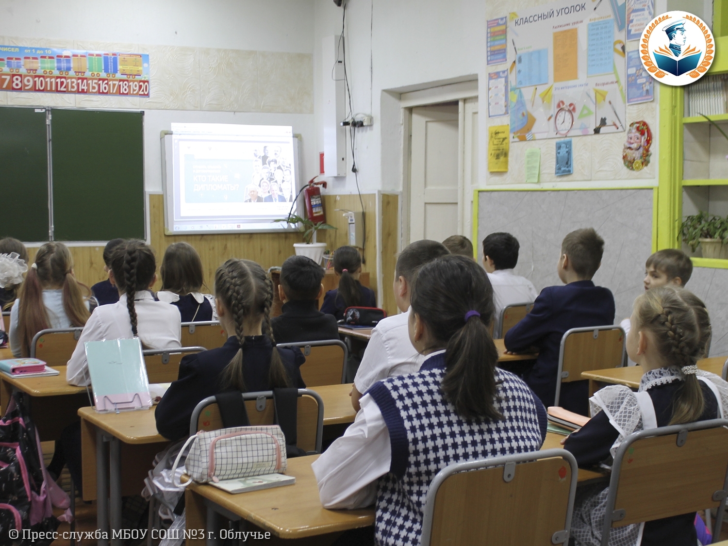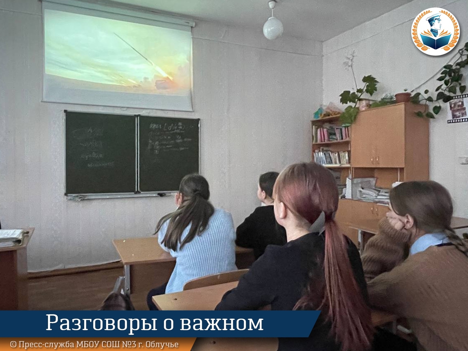 По традиции, понедельник в МБОУ СОШ №3 г. Облучье начался с торжественного поднятия флага и исполнения гимна Российской Федерации. Для учащихся был проведен классный час «Разговоры о важном» на тему «Русский язык в эпоху цифровых технологий».