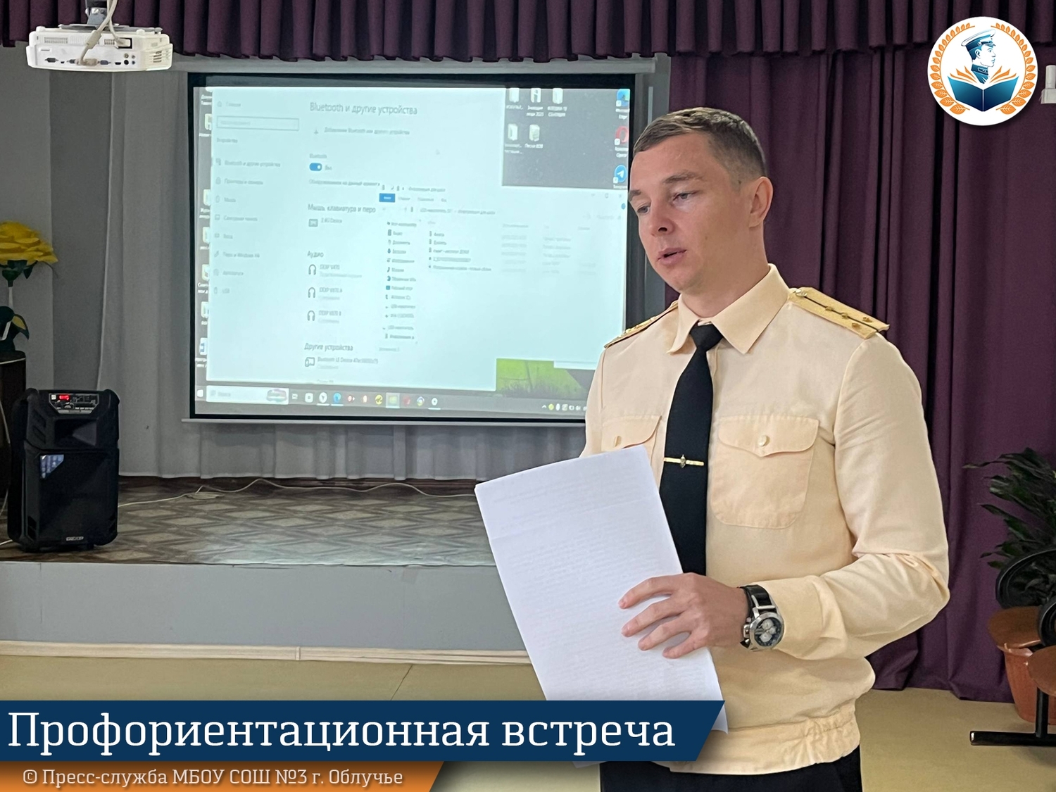 В нашей школе состоялась интересная встреча для учеников 9 и 11 классов, с сотрудником пограничного управления ФСБ России по Хабаровскому краю и Еврейской автономной области Шарониным Андреем Александровичем.