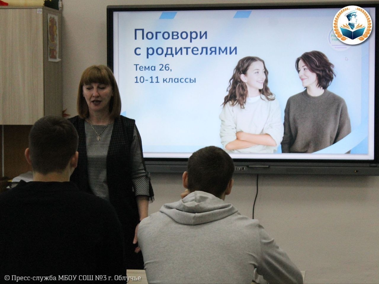 Урок профориентационного минимума на тему «Проектное занятие: поговори с родителями» прошел сегодня в МБОУ СОШ №3 г. Облучье.