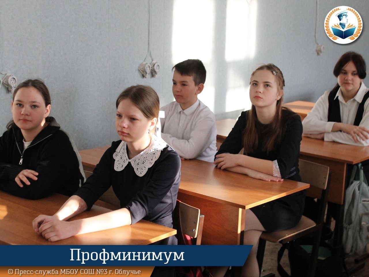 Урок профориентационного минимума на тему «Открой своё будущее» прошел сегодня в МБОУ СОШ №3 г. Облучье.